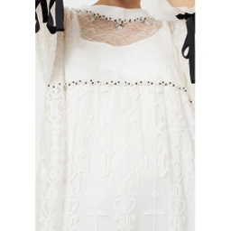Dress dengan look yang mewah dan elegan dilengkapi dengan payet yang melingkar pada bagian leher, dan motif outer yang menambah kesan mewah. Terdapat kancing pada bagian leher belakang , Terbuat dari perpaduan embroidery lace dilapisi chantilly dan dilapisi vuring berbahan satin armani yang lembut di kulit.