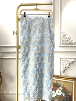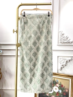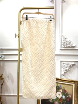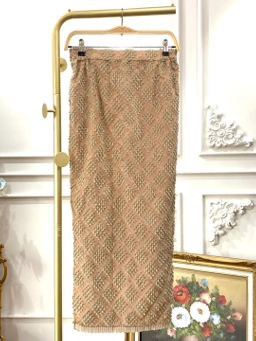 Rok tenun dengan bahan dasar brocade berbordir payet dan dilapisi dengan lace chantilly yang lembut.